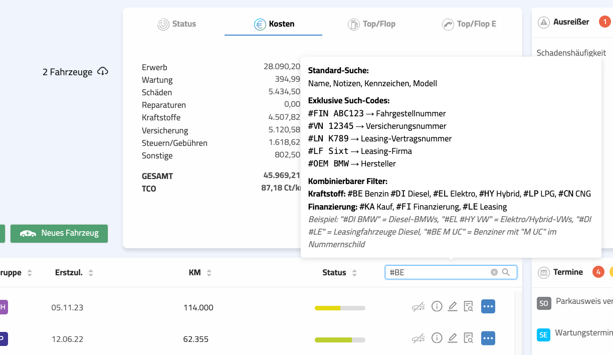 Was für Benzin & Diesel bereits eine beliebte Funktion war, gibt es nun auch für die Elektrofahrzeuge! In der Abbildung unten sehen Sie auf der linken Seite die durchschnittlich bezahlten Strompreise je Kilowattstunde. Auf einen Blick sehen Sie die drei günstigsten (in grün) und die teuersten (in rot). Bei Klick auf „Details“ öffnet sich das komplette Ranking mit allen Kennzeichen und Preisen, die in dem ausgewählten Zeitraum Strom geladen haben.